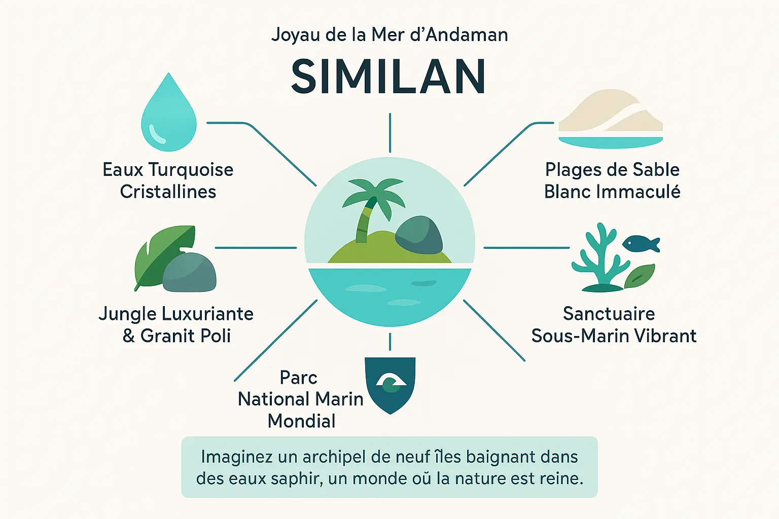 Le nom « Similan » évoque les 9 îles originelles, un héritage reflété dans sa présence sur la liste indicative du patrimoine mondial de l’UNESCO au sein de la « Andaman Bioregion of Thailand », incluant Mu Ko Surin, des mangroves et des forêts côtières.